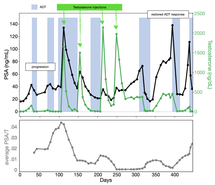 PSA/testosterone ratio as a potential biomarker to identify early progressors of adaptive therapy in metastatic castration sensitive prostate cancer